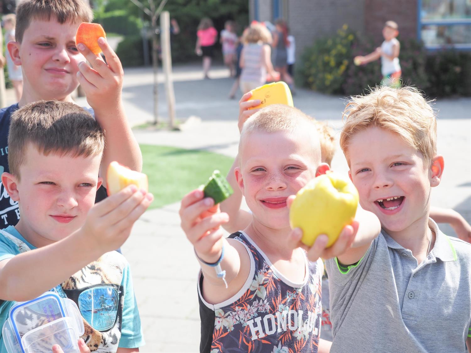 Vanwege ons continurooster blijft uw kind vanaf het moment dat hij/zij op school komt lunchen. OBS De Klimop is een gezonde school. Dit wil zeggen dat wij een gezonde lunch stimuleren, zowel voor eten als drinken. Snoep, chocolade, koeken en frisdranken zijn natuurlijk niet toegestaan. In de ochtend eten kinderen groente en/of fruit (geen koeken).